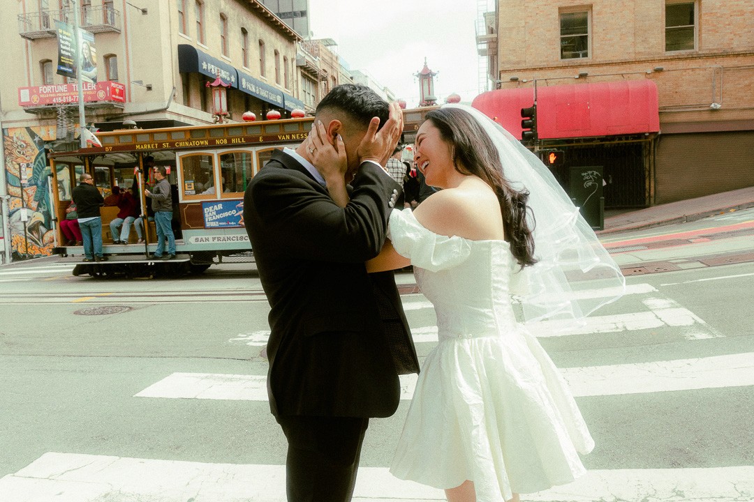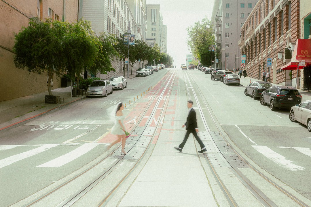 An energetic, collection captured amidst the vibrant life of San Francisco Chinatown. This couple brought their wedding day look—suit, dress, and all—straight from their moodboard to the streets! The images are a playful and detailed chronicle of their anticipation, showing them falling in love and laughing against a backdrop of red lanterns and historic architecture. This collection highlights our signature style of playful engagement photography and our work as an experienced San Francisco wedding photographer specializing in vibrant urban engagement sessions.